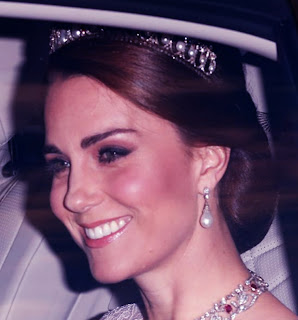 dress with Collingwood pearl earrings, makes Kate look beautiful but noble. All